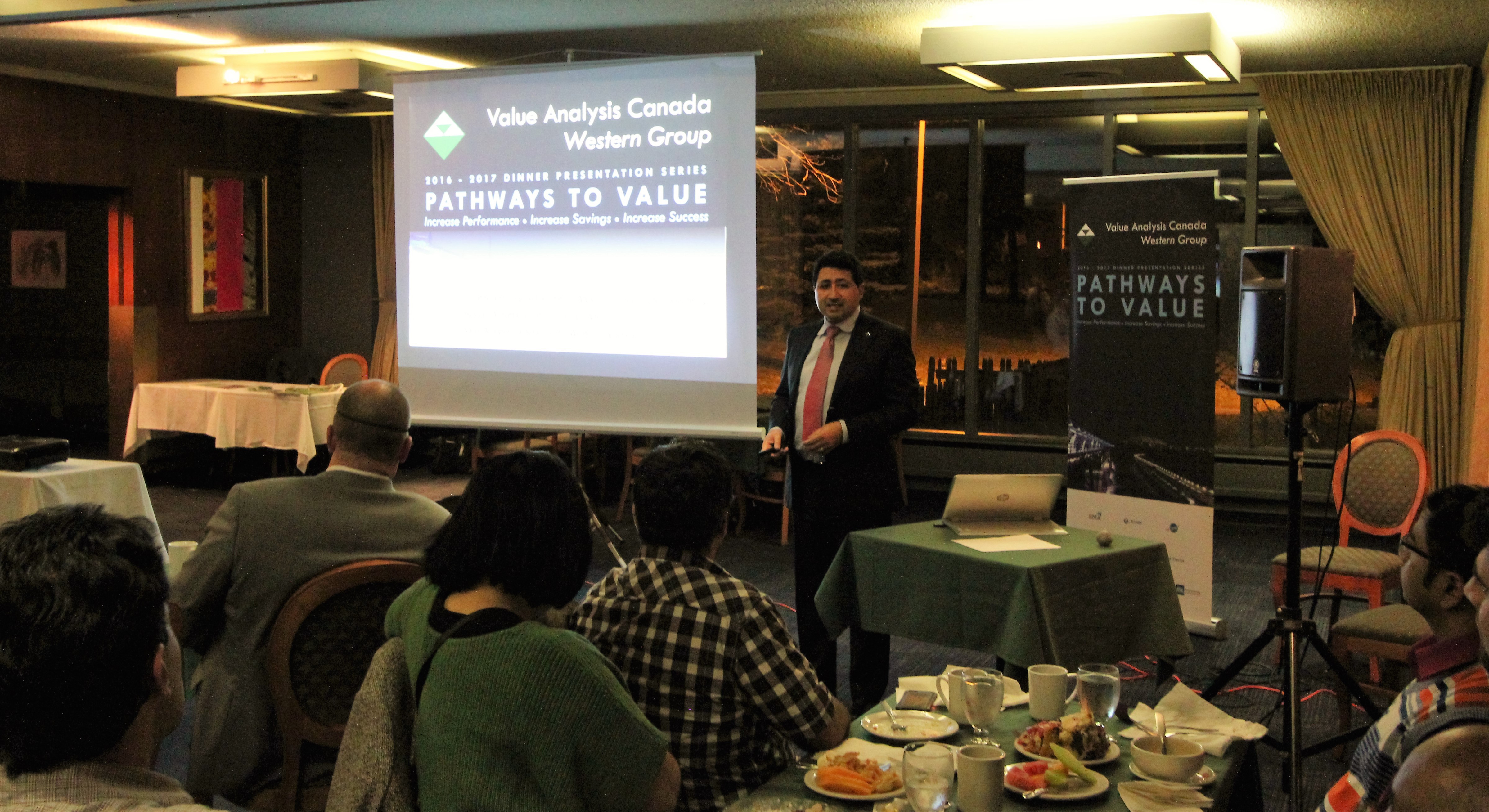 On October 20, 2016, Value Analysis Canada – Western Group and CSCE Edmonton hosted a joint dinner presentation with a talk delivered by Hussien Al-Battaineh Ph.D., P.Eng., CVS®, Value Analysis Director – Western Group. His presentation entitled “Groat Road Rehabilitation: A Value Engineering Success Story” looked at Value Analysis Canada’s (VAC) history and mission, and examined Value Engineering/Analysis concepts and their application to Groat Road rehabilitation project undertaken by the City of Edmonton. The presentation was greatly accepted by the audience and generated a lively discussion.